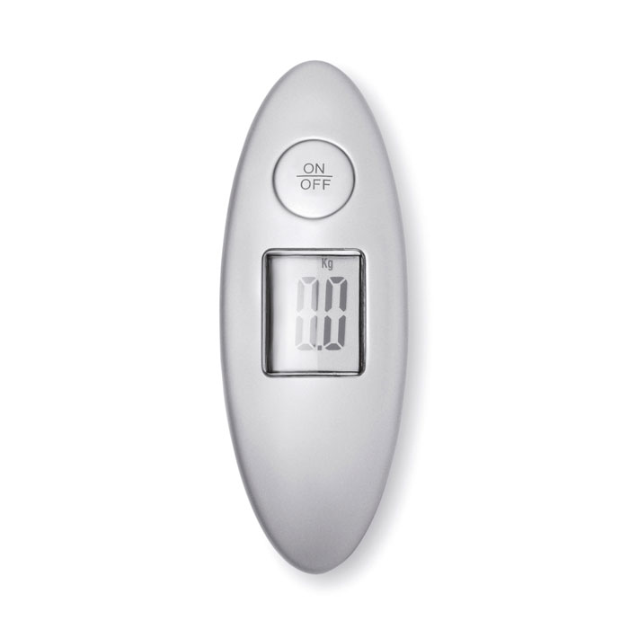 ABS poggyászmérleg. Maximum teherbírás: 40 kg. Mértékegység: kilogramm vagy font. A működéshez szükséges 1 db CR2032 gombelemmel szállítjuk. Ezüst színű kartondobozban.